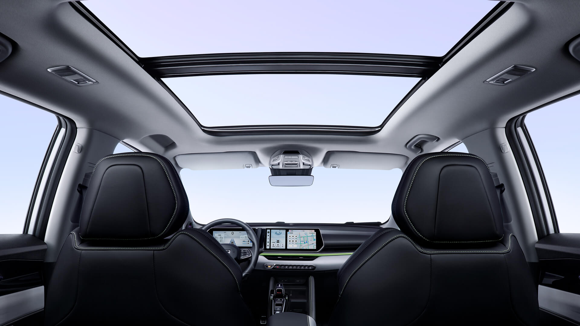 - Recibe cargador inalámbrico para celulares, cámara con visión 540, sensor de lluvia, puerta trasera eléctrica y un nuevo sistema de iluminación ambiental en la versión GF Sport más cara