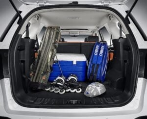 En el habitáculo dispone de una pantalla multimedia de 7 pulgadas, que lamentablemente no es compatible con los sistemas Apple CarPlay y Android Auto. La tapicería interior es en cuero, tiene las mencionadas tres filas de asientos, salidas de aire acondicionado traseras y sunroof.