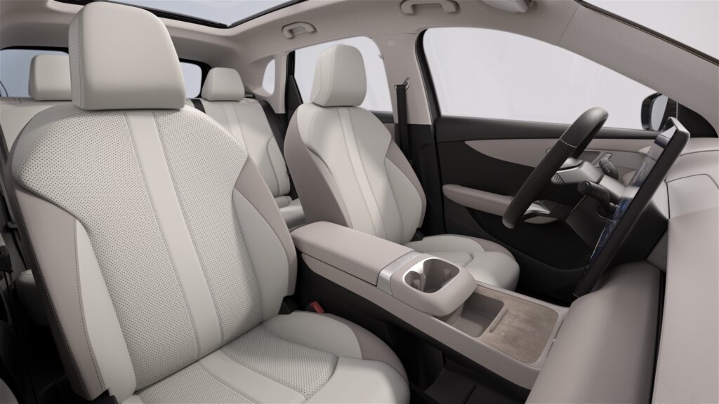 Los aspectos más sobresalientes del interior incluyen una gran pantalla táctil, un clúster de instrumentos digital, un volante de fondo plano con controles análogos, un selector de marchas ubicado en la columna, cargador inalámbrico para celulares y un enorme techo panorámico.