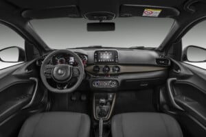 Las mejoras en el habitáculo incluyen también los acentos en color bronce, un volante forrado en cuero y aire acondicionado automático digital. Al igual que otras versiones del Fiat Cronos, mantiene una pantalla multimedia compatible con Apple CarPlay y Android Auto.