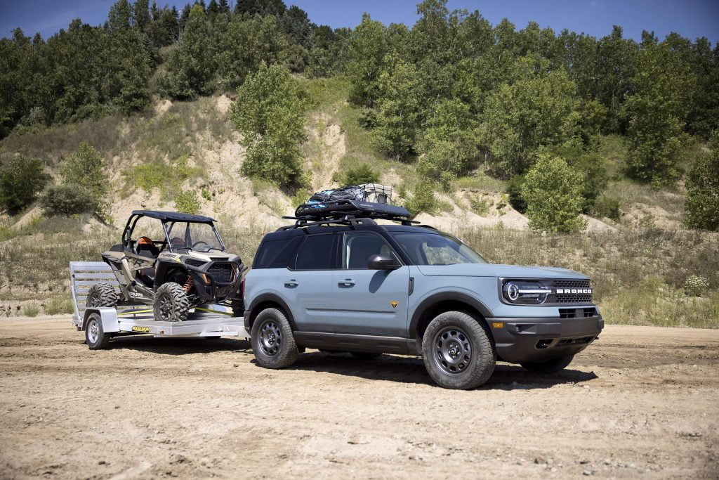 En cuanto al concepto Bronco Sport Tow RZR, también toma como base el modelo Badlands, pero recibe un paquete para facilitar las tareas de remolque con hasta 2,200 libras de capacidad. También cuenta con una portaequipaje Yakima y una canasta para almacenamiento.