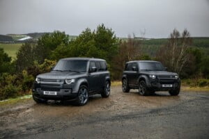 El Land Rover Defender V8 se diferencia de sus hermanos gracias a un logotipo V8 en la parte inferior de la puerta delantera, cuatro salidas de escape y unos rines de 22″, tras los cuales se aprecian unos discos de 15″ con unas pinzas azules. Además, se ofrecerá una edición especial Carpathian Edition y una nueva versión XS.