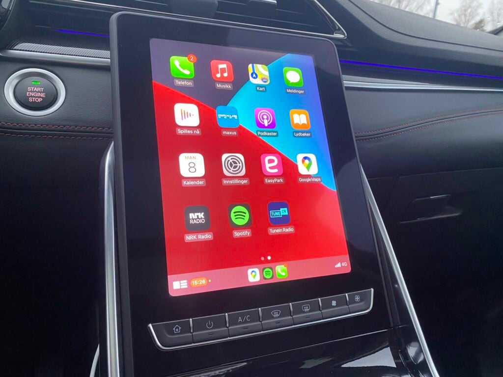 El equipamiento se completa con iluminación full LED, rines de 18 pulgadas, techo panorámico, puerta trasera eléctrica, asientos delanteros con ajuste eléctrico y calefaccionados, cámara 360, y cargador inalámbrico para celulares. El centro de mandos es un clúster digital de 10 pulgadas y una pantalla multimedia de 12 pulgadas, solo con Apple CarPlay.