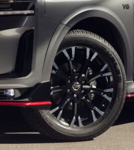 Estéticamente, la nueva Nissan Patrol Nismo se maneja sobre unas ruedas de 22 pulgadas en color negro y tiene una luz trasera LED inspirada en las que tienen los autos de la F1. En la parte delantera tiene una parrilla tipo panal de abeja y por supuesto no puede faltar el badge de NISMO. También tiene detalles en color rojo por dentro y por fuera.