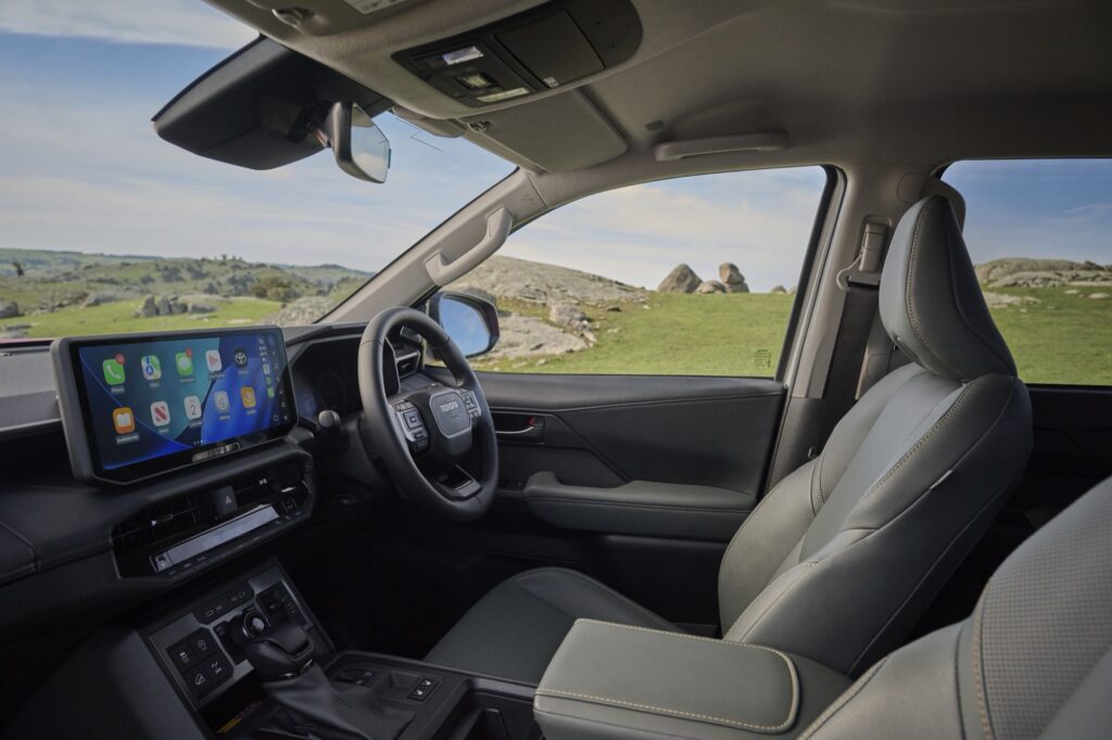 Los asientos delanteros y traseros han sido rediseñados para mejorar la comodidad. También hay un nuevo volante, similar al del Prado, una consola central más ancha y alta alineada con el apoyabrazos de las puertas, y un guante superior mejor integrado en las versiones más equipadas.
