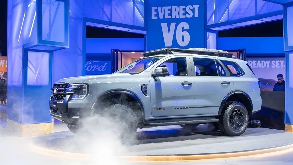 En el Everest Tremor, el V6 biturbo entrega 350 hp y 369 lb‑pie de torque, convirtiéndolo en el Everest más potente hasta ahora. Para ponerlo en contexto, el modelo australiano con motor turbodiésel V6 de 3.0 litros genera 247 hp, aunque ofrece más torque.
