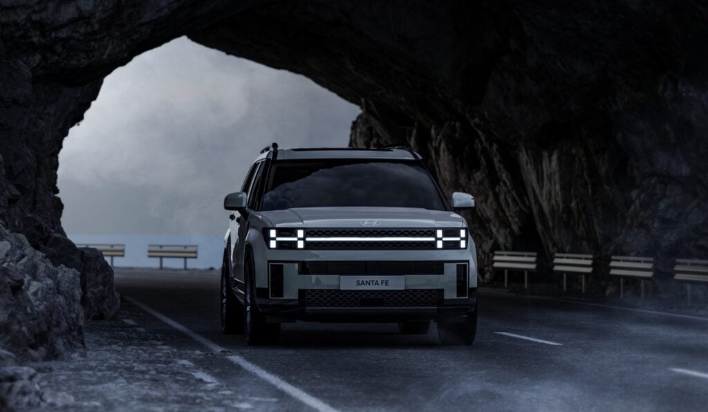 Las primeras imágenes del nuevo Santa Fe nos muestran una apariencia cuadrada y una nueva firma lumínica en forma de H, que desde un primer vistazo nos recuerdan un poco a las luces presentadas por Hyundai en el nuevo Exter que debutó en India hace poco.