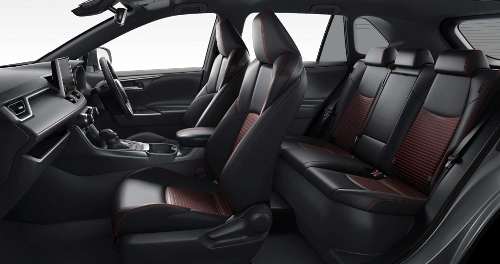 El RAV4 más potente a la fecha, exteriormente recibe algunos ajustes que lo diferencian de un RAV4 convencional, como un color Emotional Red II exclusivo de este modelo, nuevo diseño para los rines de 19″ y detalles en color negro en el techo y retrovisores.