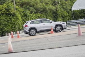 Recordemos que el Toyota Corolla Cross, como su nombre lo indica, está construido sobre la plataforma del Corolla sedán, la plataforma TNGA. Sus dimensiones son de 4460 mm de largo, 1825 mm de ancho y tiene una distancia entre ejes de 2640 mm. Se ubica a medio camino entre el Toyota C-HR y el RAV4.